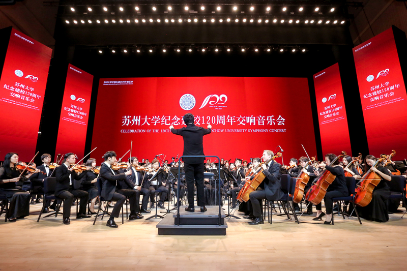 苏州大学纪念建校120周年交响音乐会10月17日晚在恩玲艺术中心音乐厅隆重上演,苏州大学交响乐团常任指挥、著名指挥家张诚杰担纲指挥。