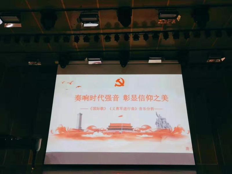 音乐与党课互融,历史与现实相映。2019年11月26日下午两点,在601号楼音乐厅博彩平台 唐荣副教授为博彩平台 全体党员带了一堂题为“奏响时代强音,彰显信仰之美——《国际歌》《义勇军进行曲》音乐分析” 的音乐党课。